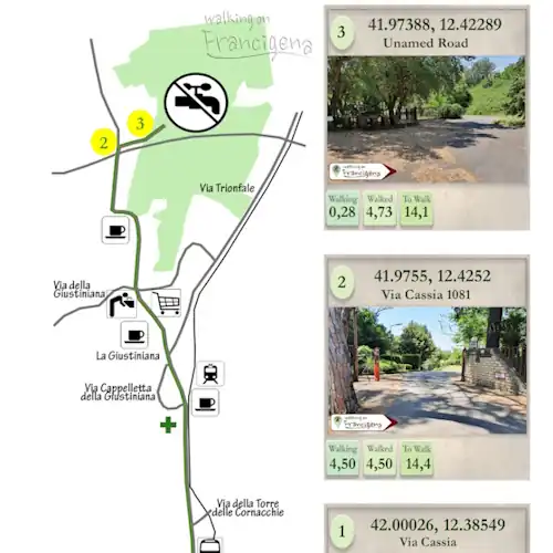 You can choose the step you need, and you will find all the info about your walking on Francigena
